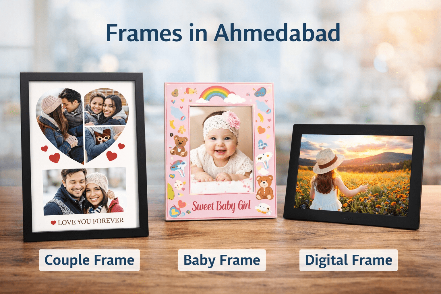Looking for the perfect frame for your memories? We offer a wide range of couple frames, photo frames, god frames, baby frames, and photo frame art in Ahmedabad. Whether it’s a birthday, anniversary, wedding, or baby shower, our customised frames and digital art transform your photos into timeless keepsakes.